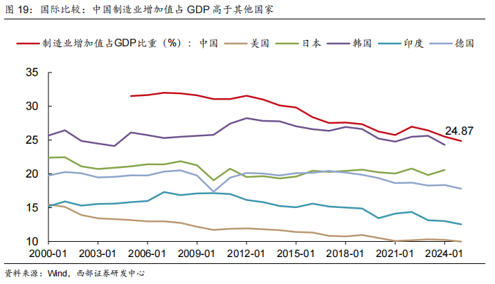 展望“十五五”和2026年,建设现代化产业体系和科技自立自强是关键任务。“十五五”明确制造业的支柱地位,巩固壮大实体经济根基的关键是“保持制造业合理比重,构建以先进制造业为骨干的现代化产业体系”。一方面,大国竞争范式从技术单点较量,升级为产业链的综合博弈;另一方面,经济发展的新引擎从传统行业过渡到新质生产力。2024年,我国“三新”经济增加值占GDP比重已经超过18%。