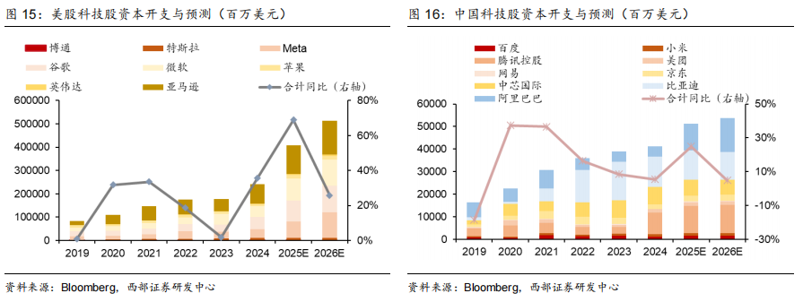DeepSeek叙事引发中外科技预期差的缩小。在中国AI产业生态中,DeepSeek的崛起成为一个标志性事件。DeepSeek大模型能力突破带来中国科技股价值重估,这一认知转变推动中国科技板块出现明显上涨。面对全球性的AI能源瓶颈,中国在能源系统(年度发电量超10万亿千瓦时)和战略布局(国家产业基金、产业集群发展、“东数西算”等工程与政策支持)具备较大优势。相比起美国的AI“缺电”叙事,国内更倾向于交易“缺芯”逻辑,自主可控是长期的主题投资。