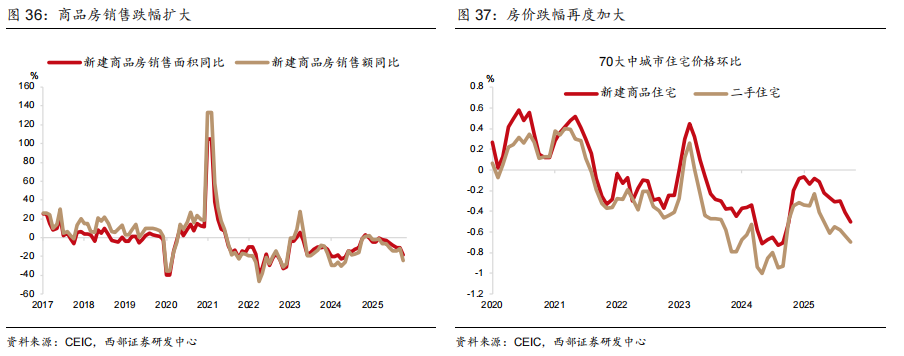 “以旧换新”政策对2025年消费起到支持作用。2025年中央财政安排3000亿元超长期特别国债支持消费品以旧换新,较2024年安排的1500亿元超长期特别国债资金增长一倍。“以旧换新”政策对部分品类商品零售起到较大支持作用。2025年前3季度,家电、通讯器材、家具、文化办公用品商品零售累计同比增长20%左右。随着2024年4季度“以旧换新”政策开始实施后基数上升,2025年4季度以旧换新支持商品零售同比增速可能回落,但是这些商品零售2025年增速预计仍实现两位数增长。