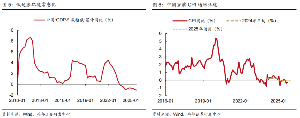 从经济和政策角度看,宏观政策和经济基本符合我们2024年年底的判断,但是通胀低于我们此前预期。我们在2024年12月3日发布的2025年宏观经济、政策与大类资产配置展望报告《地中生木:中国修复式增长出新芽》中预计:2025年出口保持正增长,广义财政扩张力度加大,货币政策维持宽松但降息空间不大,7天逆回购操作利率可能下降10-20bp,GDP全年增长5.1%,人民币汇率基本保持稳定。当时预计2025年通胀缓慢回升,但通胀低于我们2024年底的预期。现在看来,我们低估了中国经济修复式增长的难度。