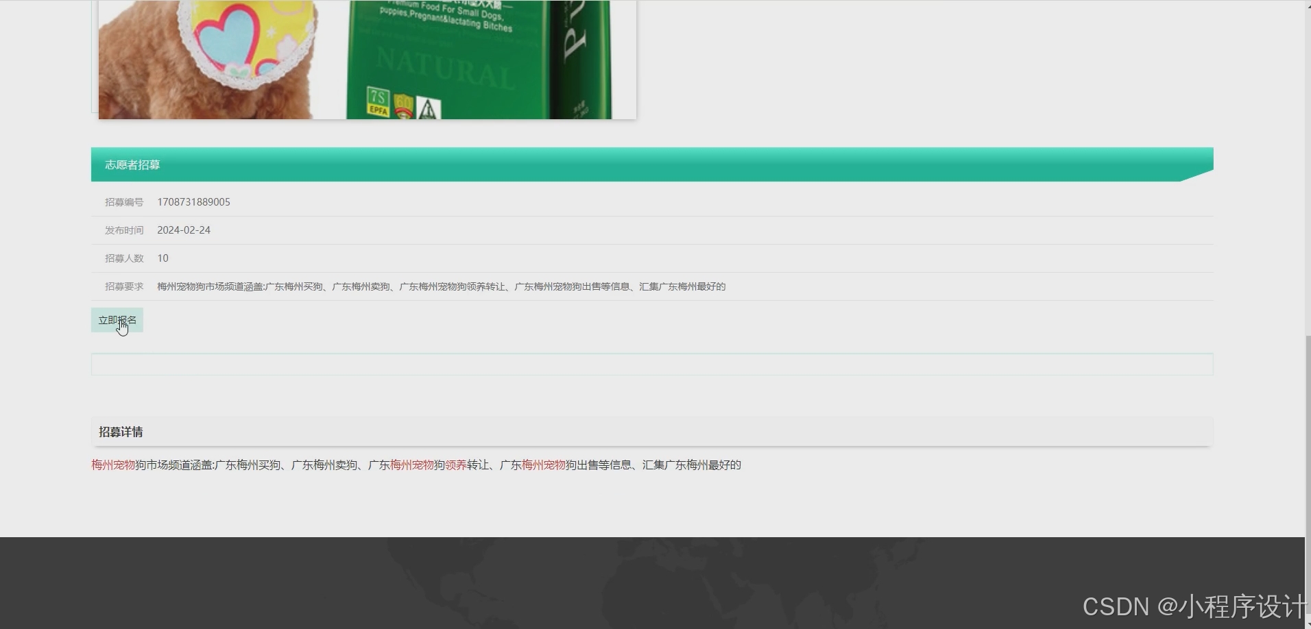 显示一些宠物的图片和领养资讯,吸引用户关注。