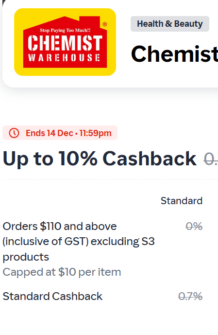本周末通过Shopback下单,一次买满110刀时可额外再返现15%(最高10刀)。