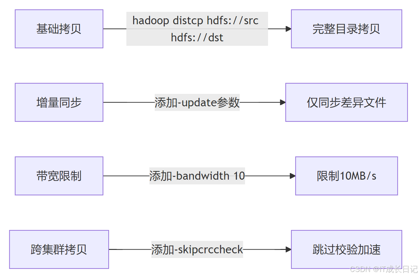 DistCp(Distributed Copy)是Hadoop生态系统中的 分布式数据拷贝工具,专为大规模数据跨集群/跨目录迁移而设计。典型应用场景: