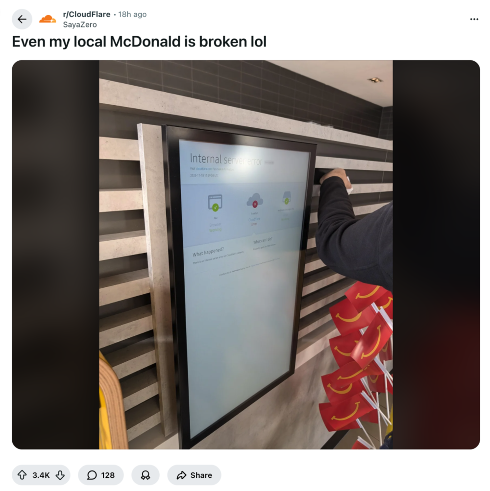 上个月 AWS 崩了,这个月 Cloudflare 崩了,过段时间说不定又轮到谁。