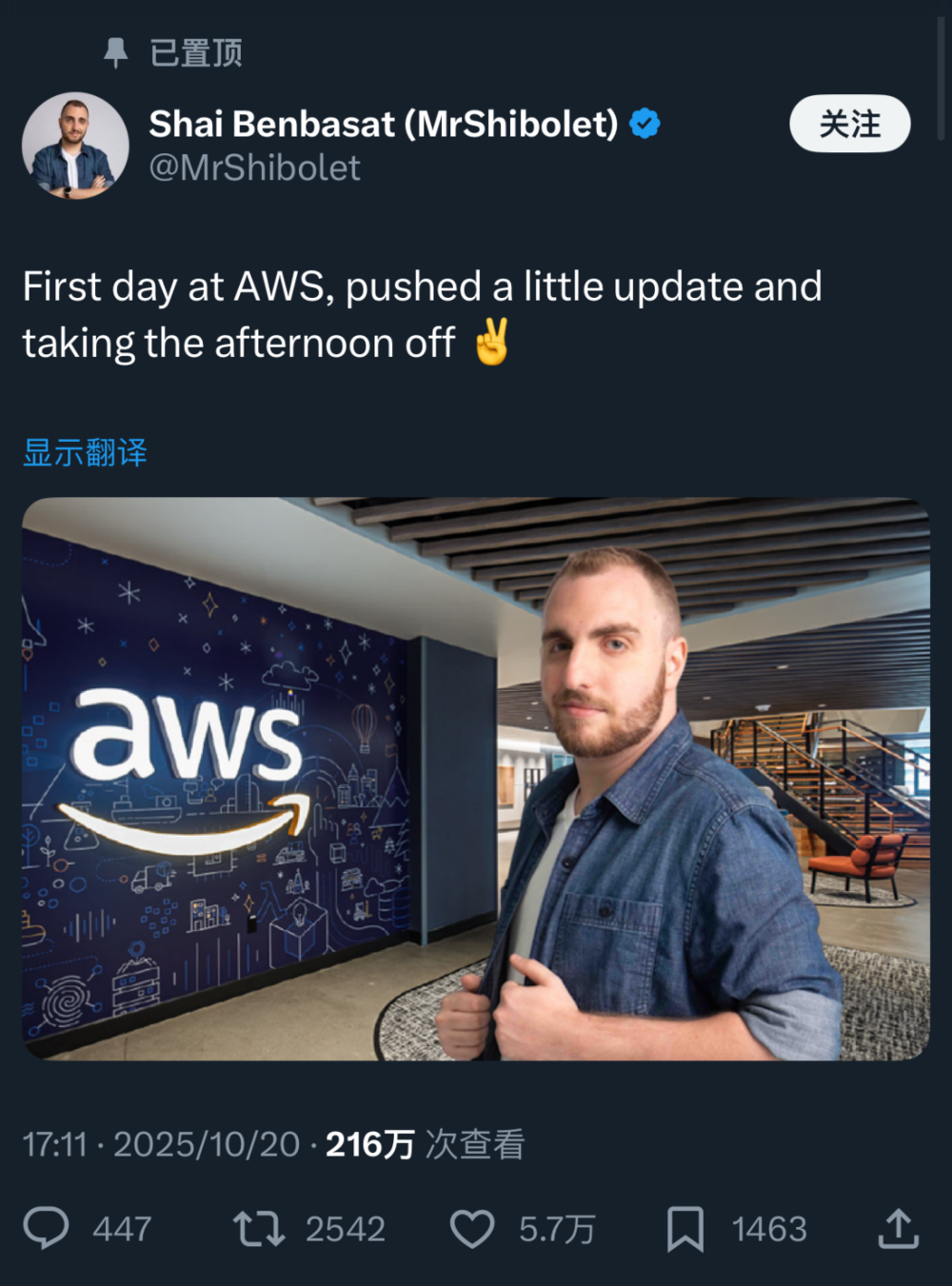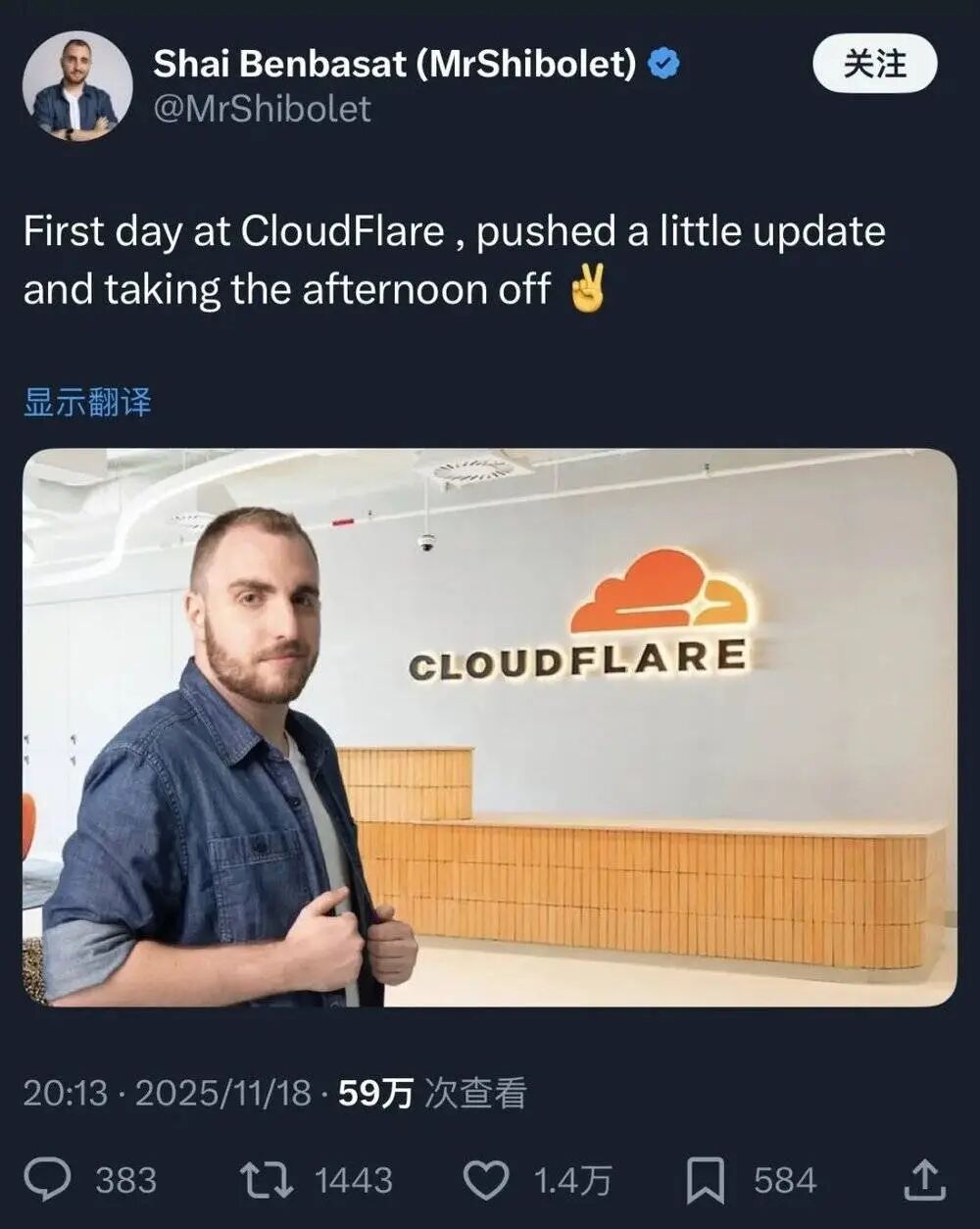 上个月 AWS 崩的时候,他也发过一模一样的推文,这次无非是把名字换成了 Cloudflare。