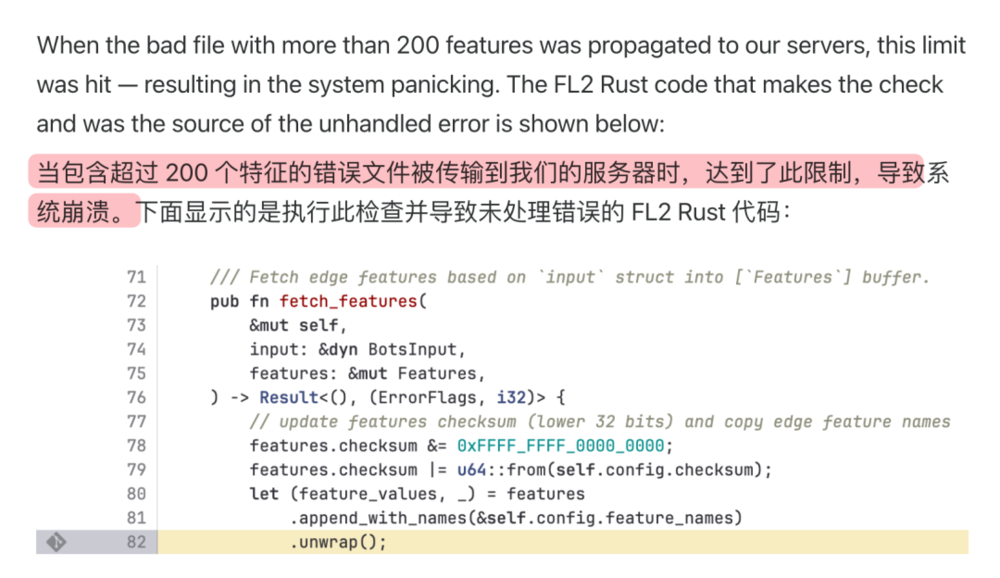 尴尬的是,Cloudflare 在设计系统时,为了性能考虑,给特征文件设了个上限:最多 200 个特征。