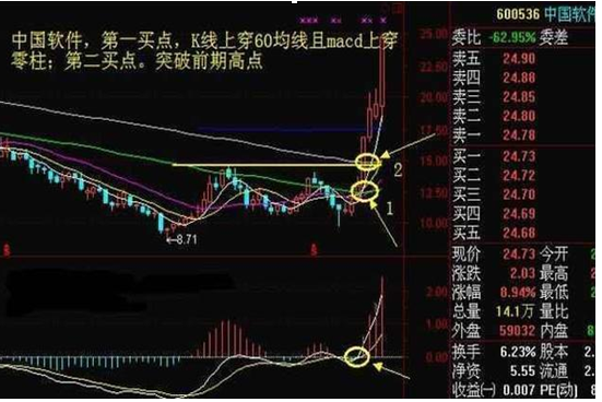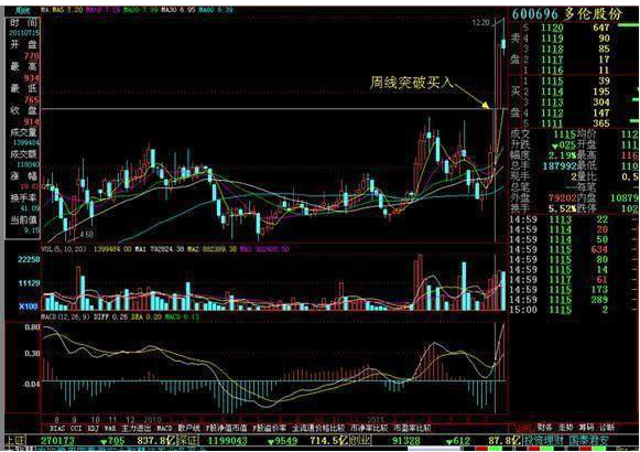 当周线突破了平台或K线突破了60周线,我们再利用日线结合来确定买卖点。