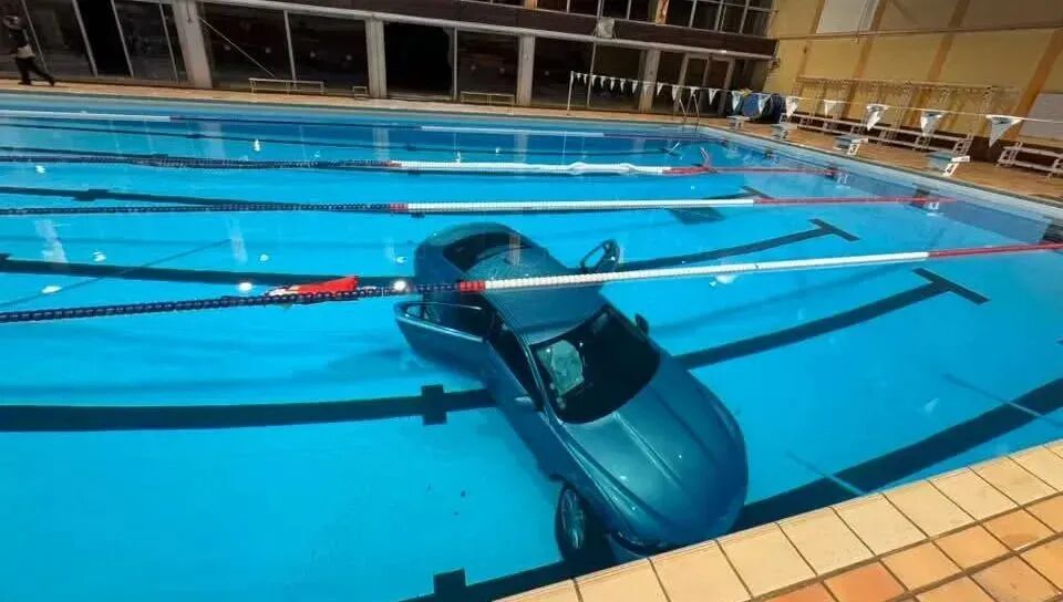 因为一声巨响之后,泳池“多了一辆车”。
