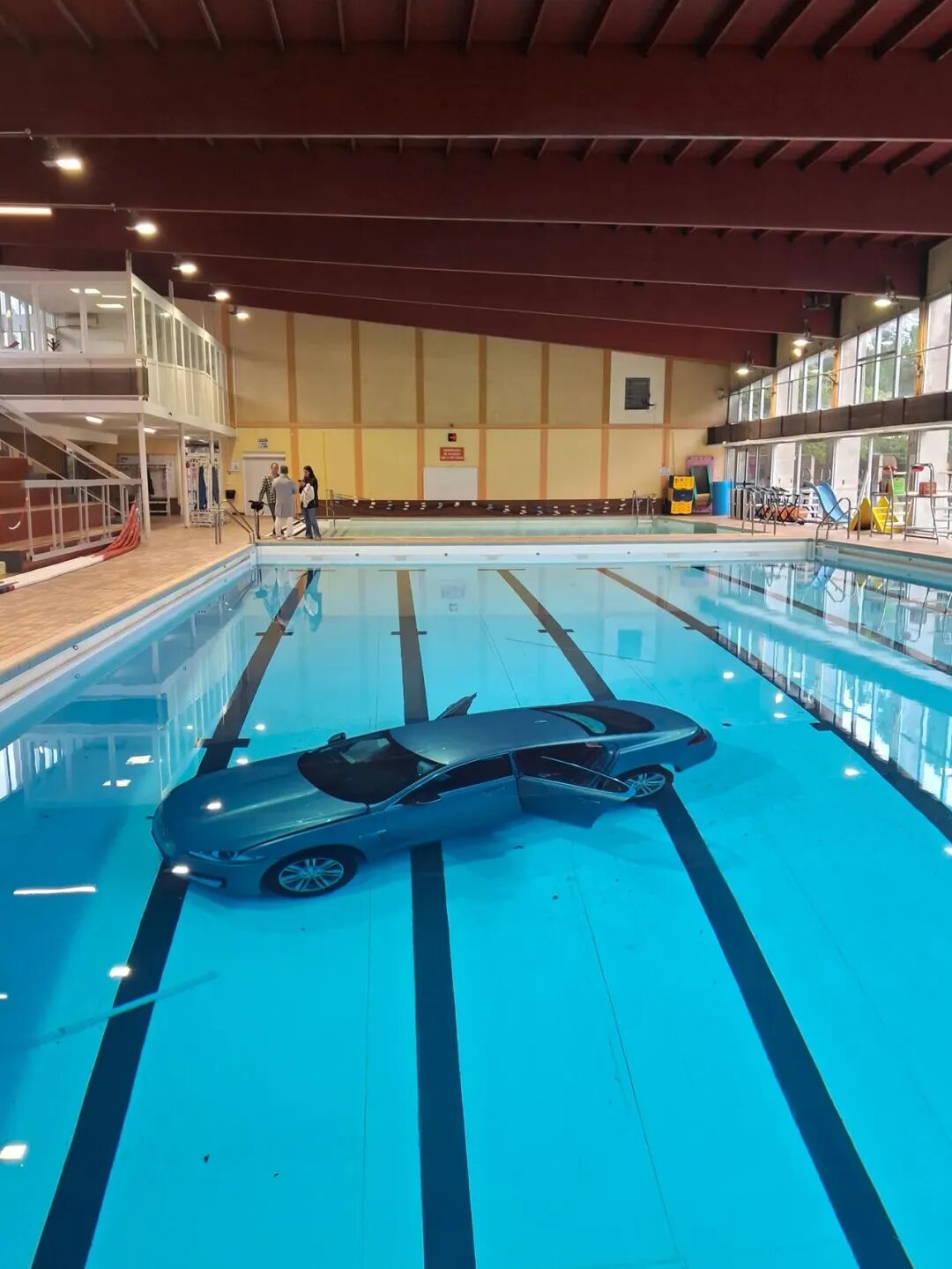 有泳客后来形容,那一刻像是“电影里的慢动作突然被按下快进键”。车头入水,水花冲起,池边的人愣了半秒,接着整个泳池进入集体逃生模式。