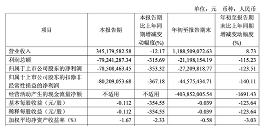 首度出现三季报业绩亏损