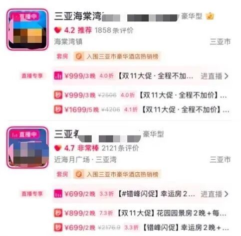 以“在酒店就可以玩遍三亚”著称的海棠湾,直播间的套餐低至999元3晚。