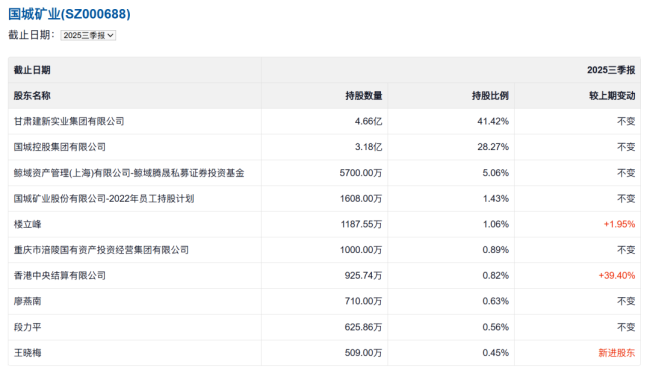 在国城矿业2023年中报中,廖燕南首次新进十大流通股东之列,持股比例0.35%。到2024年中报,廖燕南持股比例增加到0.45%,段力平则以新进十大流通股东的身份登场,持股比例0.38%。而王晓梅则是到最近的这次2025年三季报中,才新进入十大流通股东名单之中。
