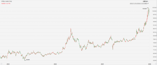 比如AI数据中心需要大量电力供应,带动储能、电力线缆等产品需求,映射到大宗商品领域,去年碳酸锂(储能核心材料)、铜(电缆核心原料)就已经出现供需偏紧,价格中枢上移。今年这种势头进一步延续,2026年初至1月12日,开市仅7天,碳酸锂单吨价格已经冲破15万元。铜价延续上涨势头,于1月6日创出历史新高,此外美元汇率在近期走软,对以美元计价的大宗商品价格构成了普遍支撑。