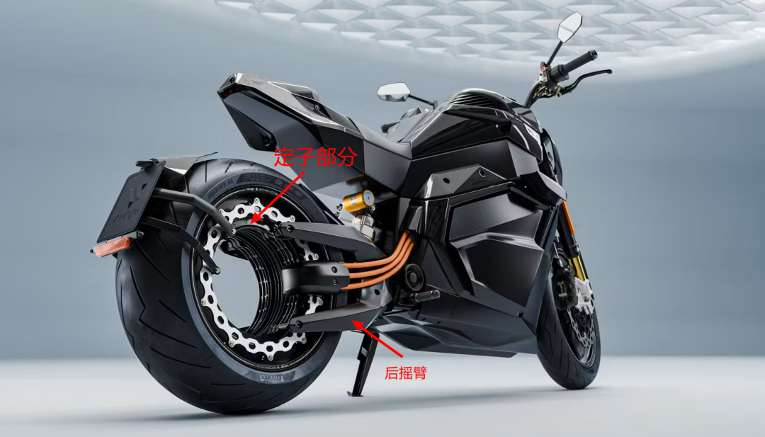 甜甜圈电机的工作原理挺简单,跟咱小时候玩的滚铁圈差不多。定子固定在摩托车后摇臂上,轮子本身就是转子。相当于电机镶在轮圈里面,定子产生旋转磁场,让轮辋带着轮胎转。