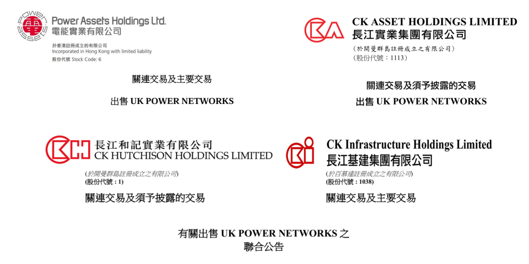 2月25日晚,李嘉诚家族旗下长和系三家公司:长江基建(01038.HK)、电能实业(00006.HK)及长实集团(01113.HK)联合发布公告,宣布以约1107.5亿港元(约合105亿英镑)总价,向法国公用事业巨头Engie出售其持有的英国最大配电公司UK Power Networks(英国电力网络公司)100%股权,其中三家公司目前分别持有标的40%、40%及20%权益。