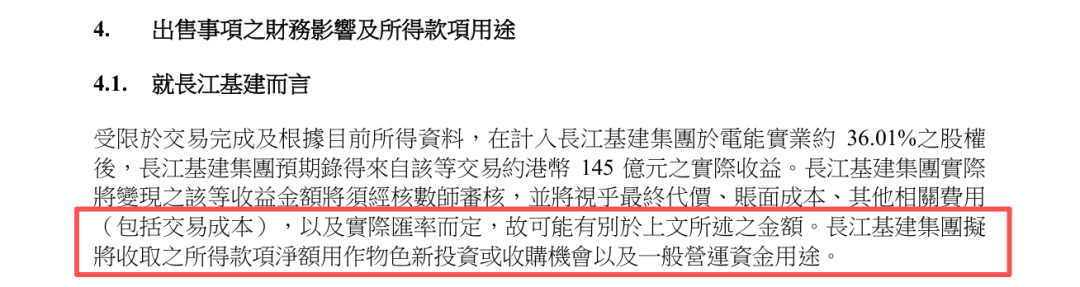 在本次出售UK Power Networks事件中,长和基建在公告中明确指出:此次出售将"按具吸引力的估值变现投资项目",所获现金将用于未来投资或收购。