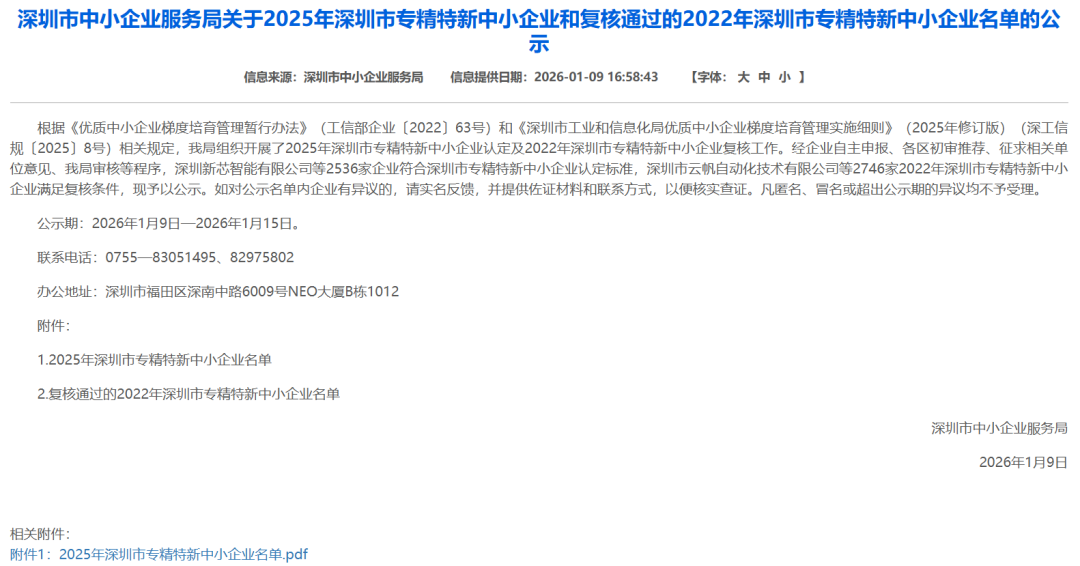 近日,深圳高新兴瑞联科技有限公司(以下简称 “高新兴瑞联”)凭借在车联网与物联网领域的技术深耕、产品创新及专业化服务能力,成功获评 2025 年深圳市专精特新中小企业。这一荣誉不仅是对公司 “专业化、精细化、特色化、创新型” 发展成果的权威认可,更是对公司持续以技术突破赋能行业数字化转型的高度肯定。