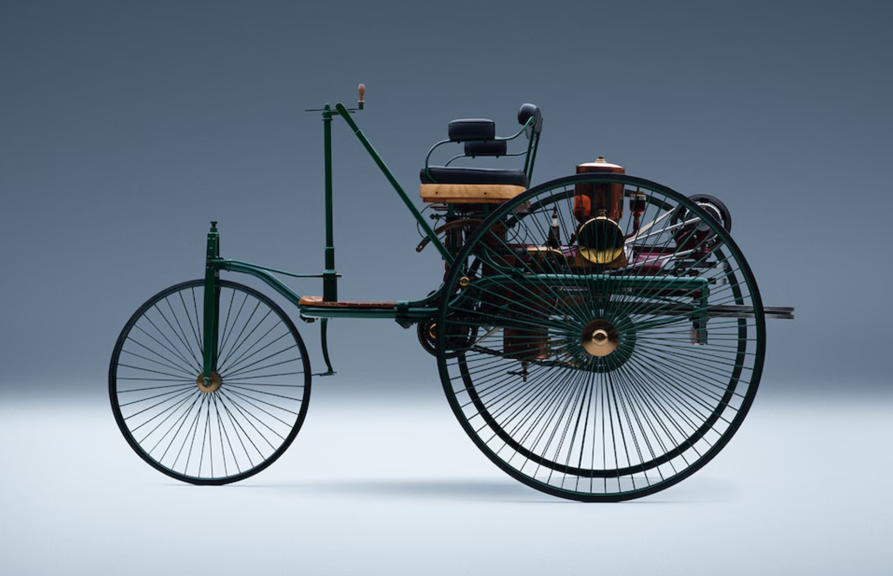 奔驰将“奔驰一号”作为展台核心展品之一,并现场演示启动行驶,意图用140年前那台0.75马力的三轮车与当下动辄数百马力的智能电动车形成跨时空对话。