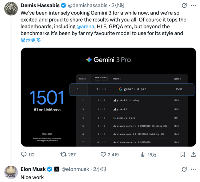 11 月中旬 登场的 Gemini 3.0 ,火力全开。