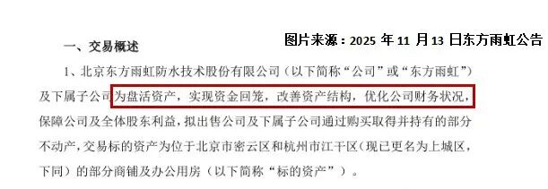 其实,答案就藏在东方雨虹自己发布的公告当中:“为盘活资产,实现资金回笼,改善资产结构,优化公司财务状况。”