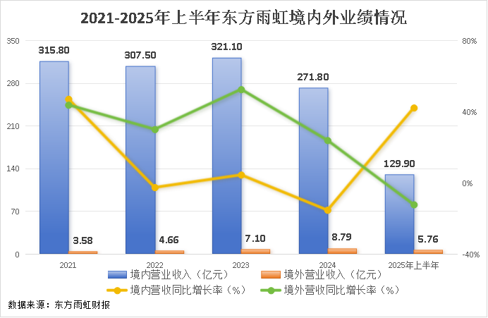 东方雨虹的这套出海路径也取得了显著成效。2025年上半年,公司境外营收5.76亿元,同比增长42.12%,其在总营收中的占比为4.42%,比2021年提高了3.1个百分点。