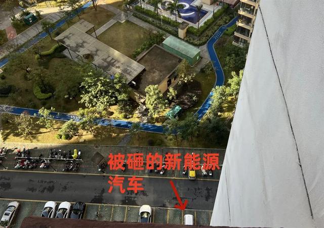 公共视频还原了现场这一幕:12月24日下午5时34分10秒,一只灭火器从相邻的山水湖畔小区5号楼方向高速坠下,砸中了韦女士的车辆。“车子买了4年,从没出过大事故,没想到好好停在充电桩前能被砸成这样。”韦女士愤怒中夹杂着后怕,“这砸中的要是人,命就没了”。