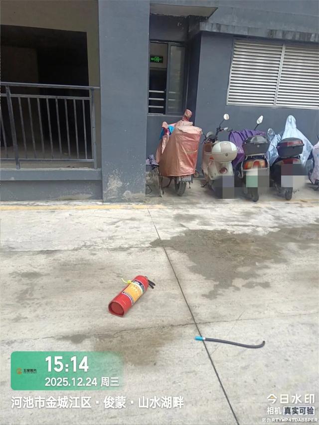 2. 公共设施管理不善:楼内消防设备(灭火器)不仅数量离奇缺失,其存放位置紧邻可开启的楼道窗,本身就成为重大安全隐患。