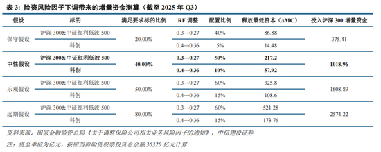 基于中性假设,我们认为,在维持同等偿付能力和风险水平的前提下,风险因子的下调会释放险资的最低资本要求约275亿资金,假设将其全部投入沪深300标的中,能带来约1019亿增量资金空间。而如果险资不将其(全部)投入到权益市场的增配中,则会改善行业偿付能力充足率水平。