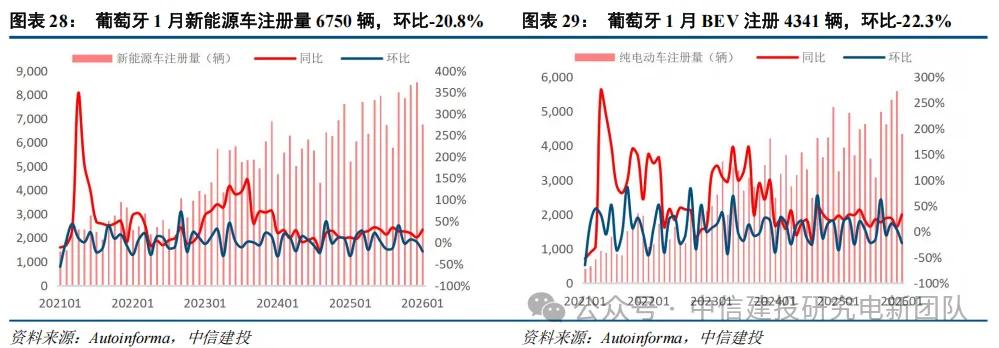 葡萄牙:1月新能源车注册量6750辆,同比+29.7%,环比-20.8%