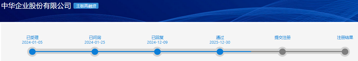 中国经济网北京12月31日讯 上交所网站审核项目动态昨日显示,中华企业(600675.SH)2023年度向特定对象发行A股股票获审核通过。
