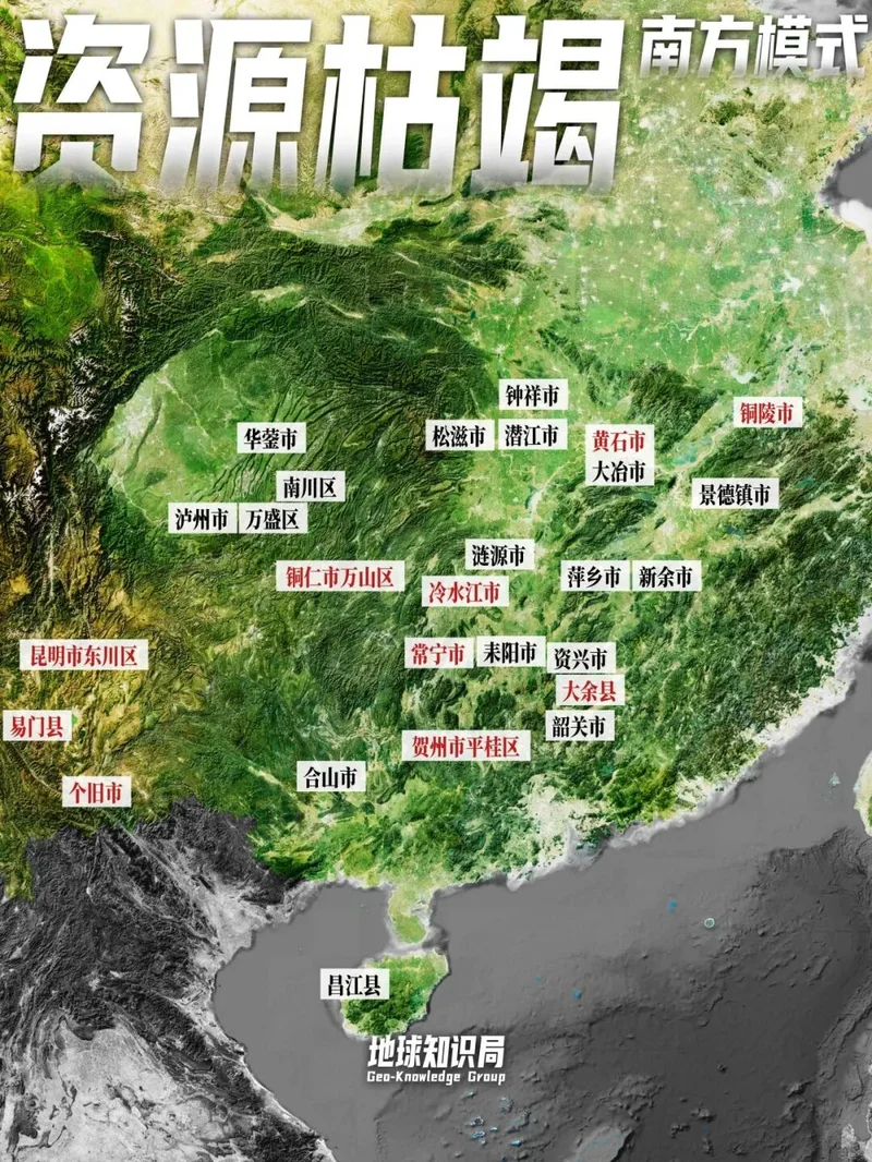 总体来看,南方的资源枯竭城市,以有色为主,煤铁为辅。