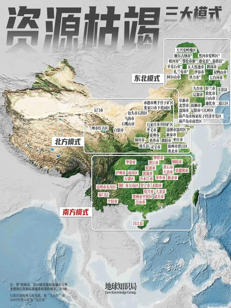 本期是《中国资源枯竭城市》三部曲的最后一期,虽然69座城市我们无法全部详述,但通过从北到南的几十个案例,还是能理解中国城市这独特的十分之一。