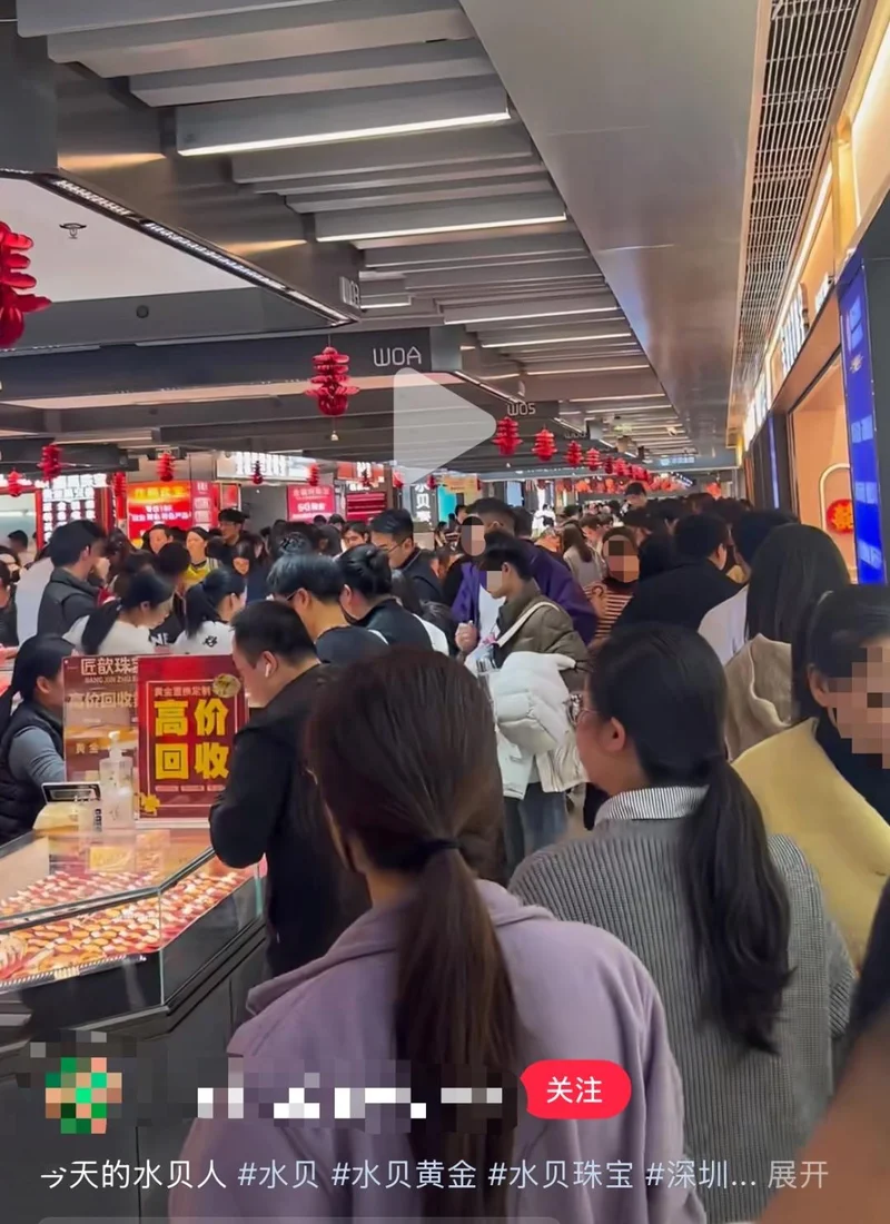 现场网友给出的照片中,深圳水贝金座负一层人头攒动,场面堪比春运。