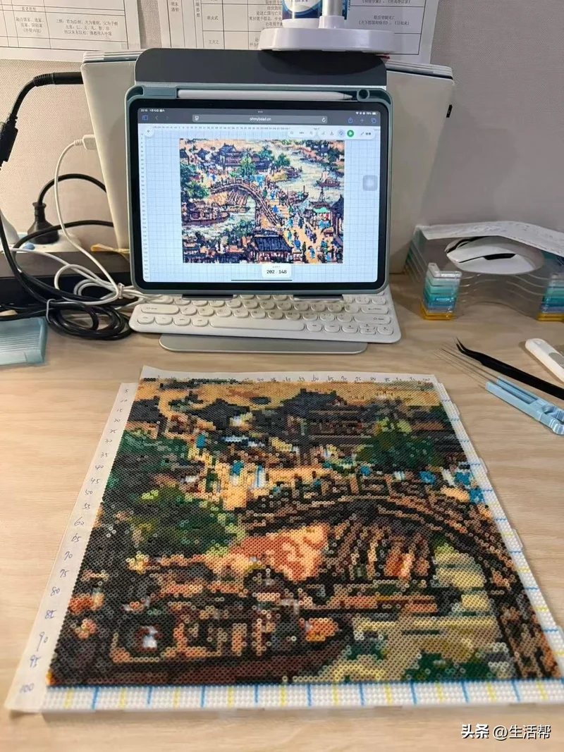 拼豆界进入“考研”时代,有人做3D立体花灯,有人拼出《清明上河图》拼豆出圈后,不少人开始探索拼豆的新玩法,有人用毛巾烫出毛绒版拼豆,还有人做出立体拼豆,许多网友戏称拼豆进入了“考研”时代,创意越来越卷。