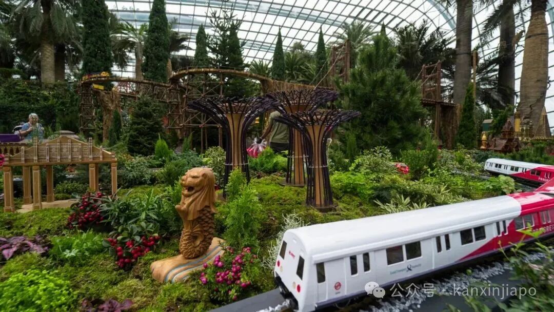 这个展览从11月23日持续到明年1月4日,在花穹(Flower Dome)内举行。展览规模比去年更大,有近20列模型火车在145米长的复杂轨道上运行,穿越桥梁、隧道和高架轨道。