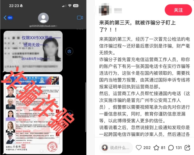 在小红书上,许多留学生都描述了自己遭遇诈骗的例子。