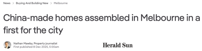 墨尔本北部正在建设的一批联排别墅,几乎全部由中国工厂预制而成,