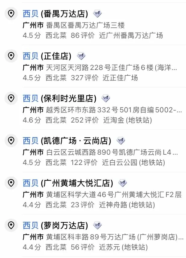 西贝在广州连锁餐厅不到10家