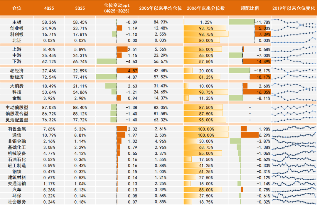 图表3:4Q25公募基金持仓情况:加仓有色、通信、非银等行业,减仓电子、医药生物