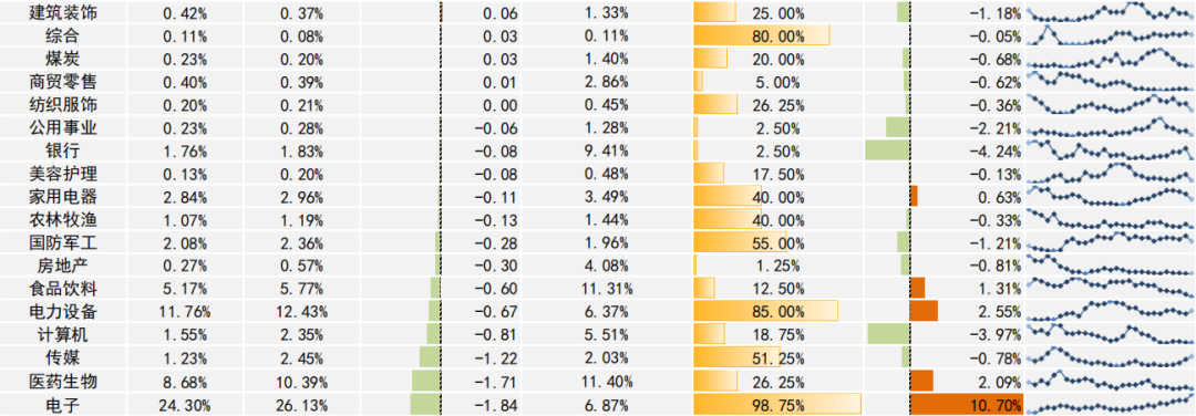 ► 单季度集中趋势减弱不代表配置趋势分散,行业超配幅度往往呈现多顶结构。当短线估值/拥挤度较高的时候,可能出现阶段性的回撤。但只要宏观环境及产业叙事逻辑并未发生重大变化,历史来看对基金集中持股行为影响偏短期。