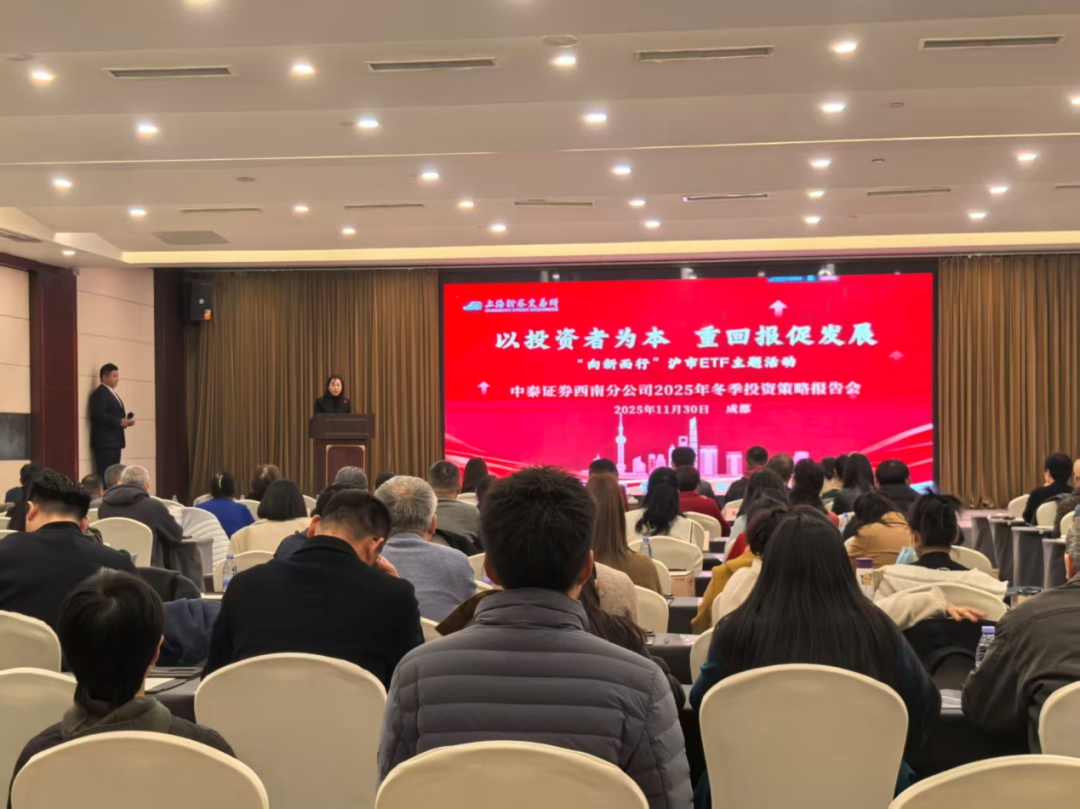2025年11月30日,中泰证券联合万家基金,在四川成都成功举办“以投资者为本,重回报促发展”沪市ETF主题活动。本次活动紧扣“向新而行”主题,聚焦政策新环境与中长期投资机遇,为投资者提供了一场兼具前瞻视野与实战价值的策略盛宴,获得与会者的热烈反响。