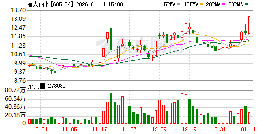 丽人丽妆(605136)今日涨停,全天换手率6.94%,成交额3.60亿元,振幅10.68%。龙虎榜数据显示,营业部席位合计净买入8509.90万元。