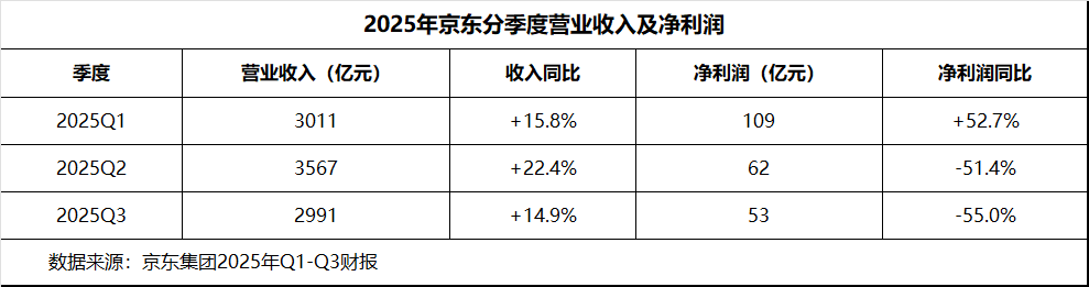 京东的投入规模堪称“激进”。2025年三季度,京东的营销费用同比激增110.5%,从去年同期的100亿元增至211亿元,财报明确指出费用增长主要源于新业务推广。