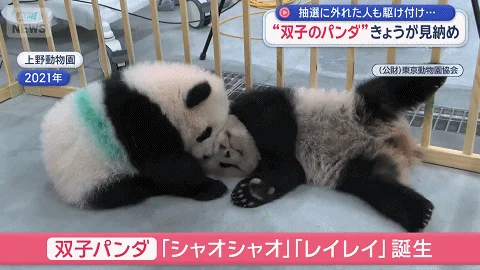 他自己也参加了观览抽选,15日见到了双子。那天它们已经长得很大了,毛色亮亮的,动作笨拙又认真。他隔着玻璃小声说了一句:“要好好地。”