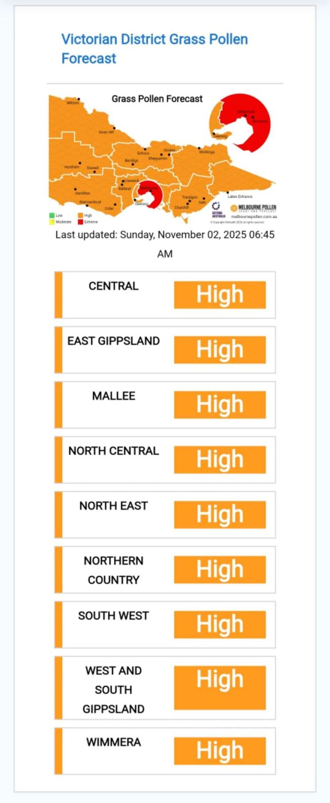 而更要命的是,专业花粉监测服务Melbourne Pollen所监测的数据显示:
