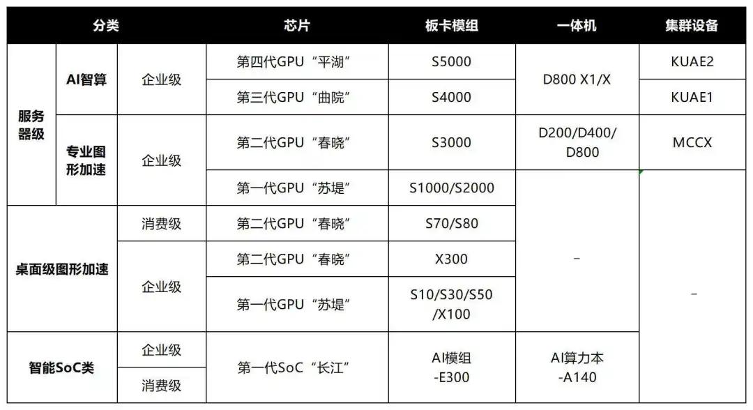 只有摩尔线程,和英伟达一样,走的是“全功能GPU”路线,即构建"图形+智算+SoC"全矩阵产品布局。