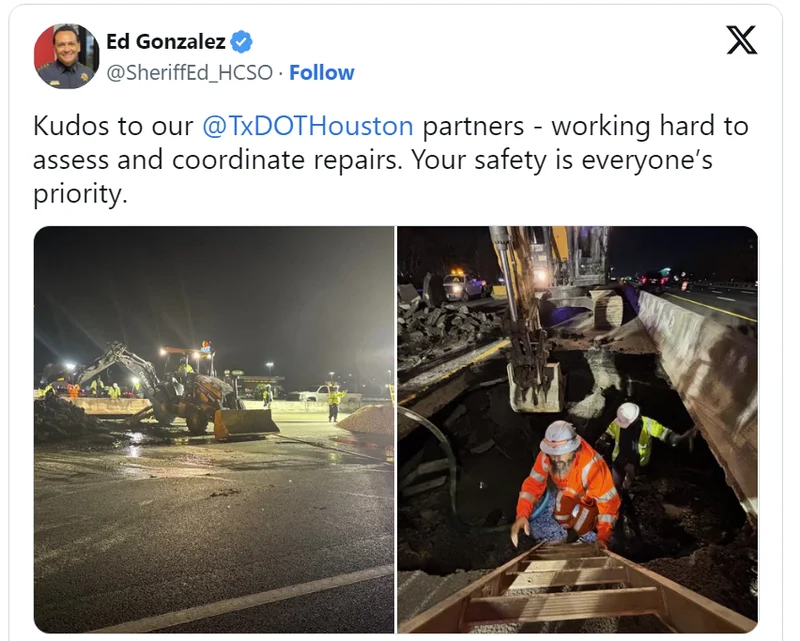 据了解,这起交通事故的根本原因是高速公路下方的供水主管道发生破裂,修复工作需要市政府优先处理水管问题。TxDOT正在与休斯顿公共工程部门紧密合作,评估水管破裂的情况并制定修复计划。