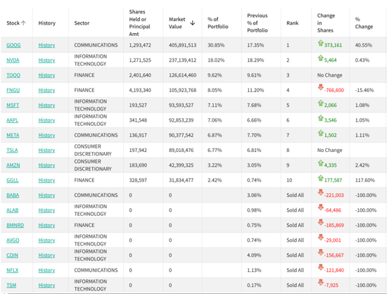 去年四季度,但斌的调仓动作颇为显著,持仓进一步向科技巨头集中,尤其是大幅加仓谷歌,一举成为其第一大重仓股。