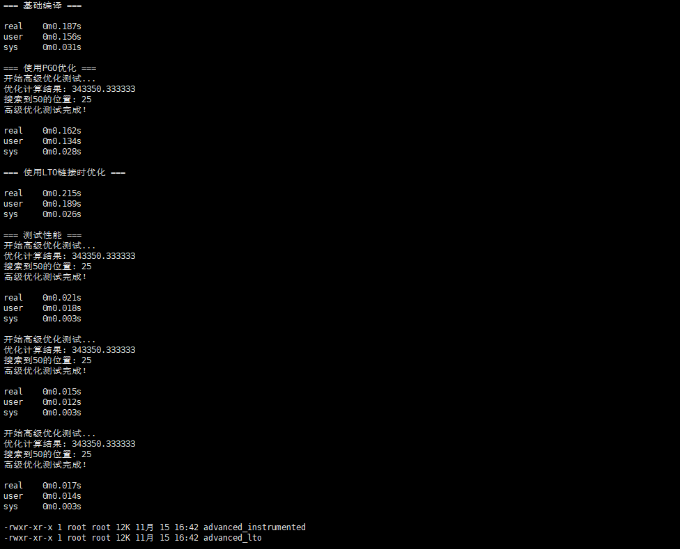 time gcc -O2 -fprofile-use advanced_optimizations.c -o advanced_pgo -lm