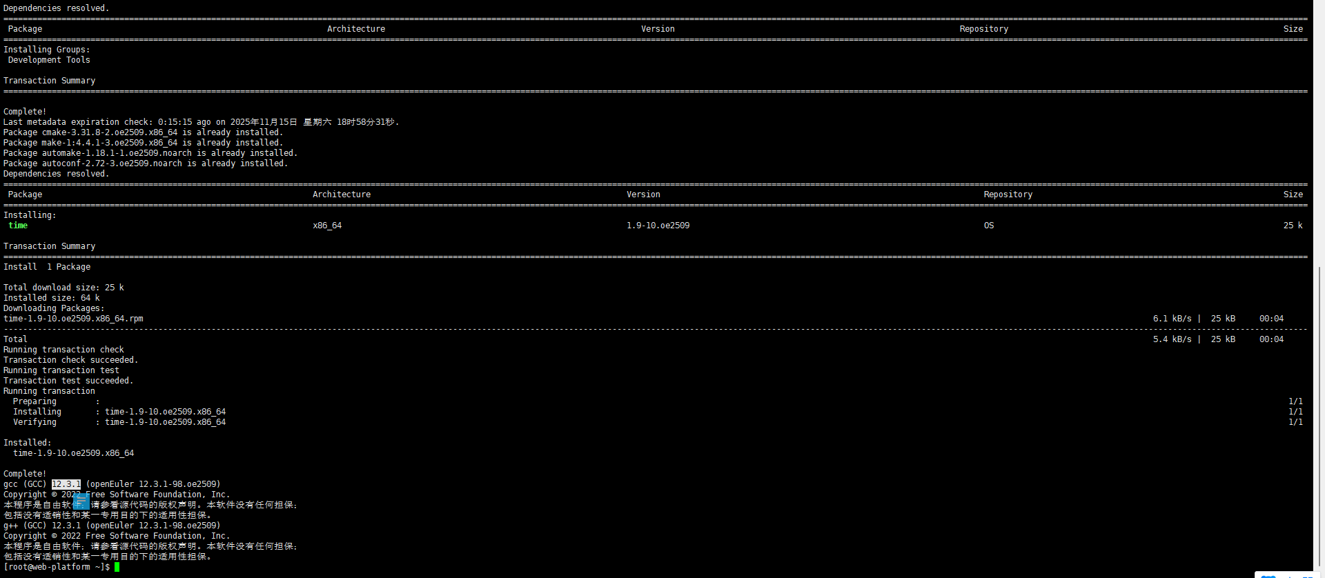 首先在openEuler 25.09上配置基础的开发环境: